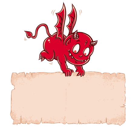 古い紙でかわいい悪魔キッドをベクトルします 悪魔の契約をベクトルします のイラスト素材 ベクタ Image