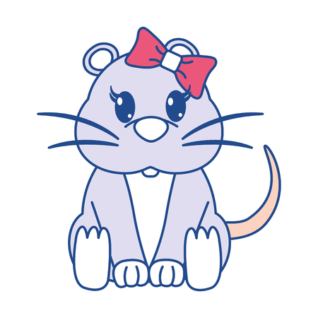 リボン弓ベクトルイラストとライン色の女性のマウスかわいい動物のイラスト素材 ベクタ Image