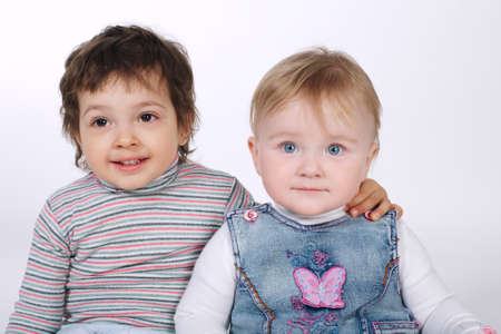白の 2 つのかわいいハグ子供たち の写真素材 画像素材 Image